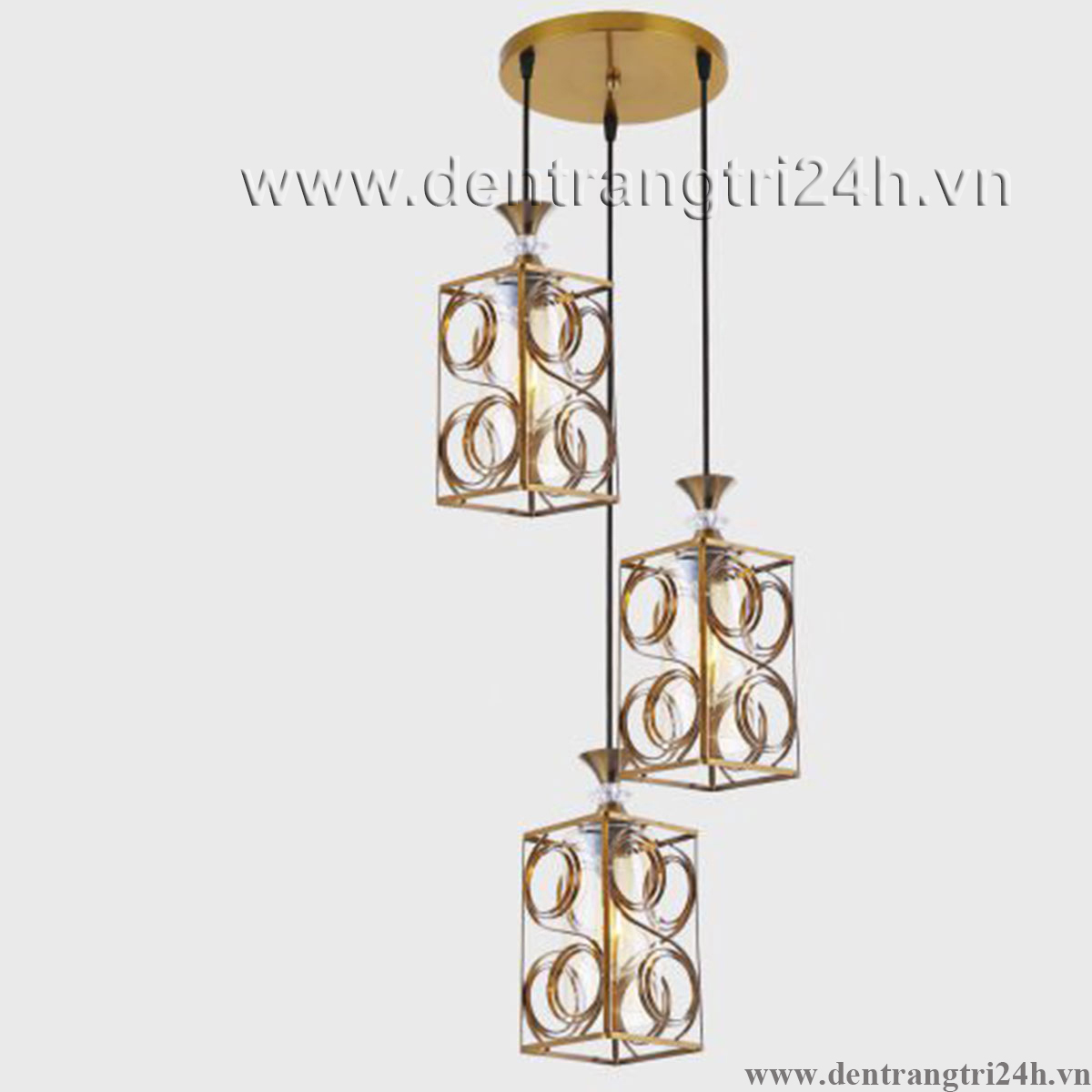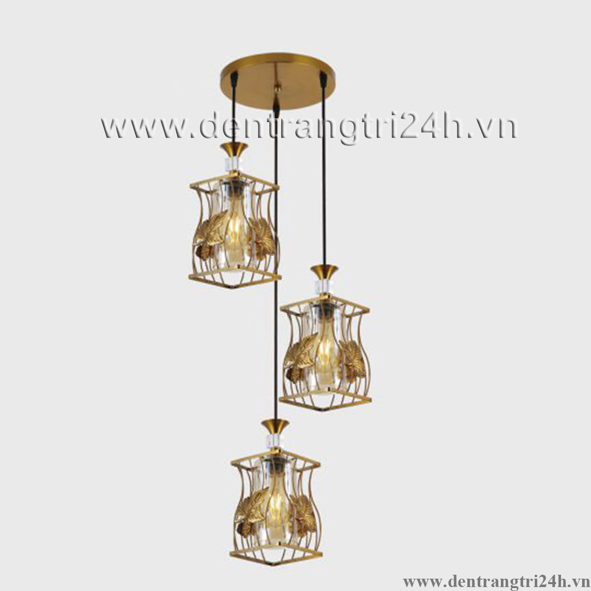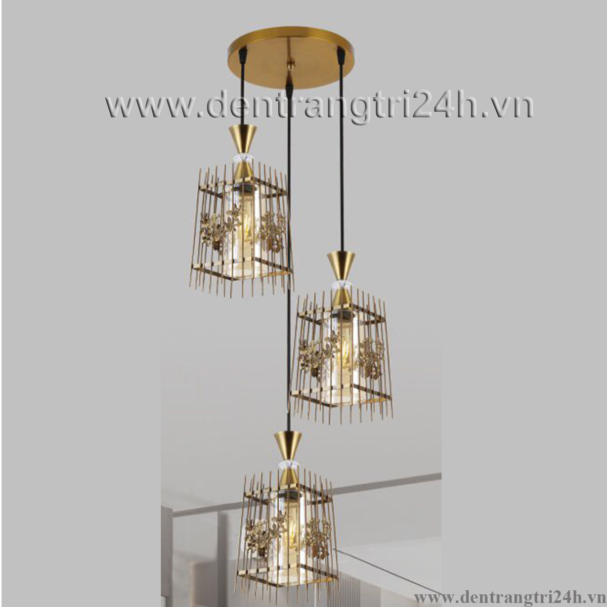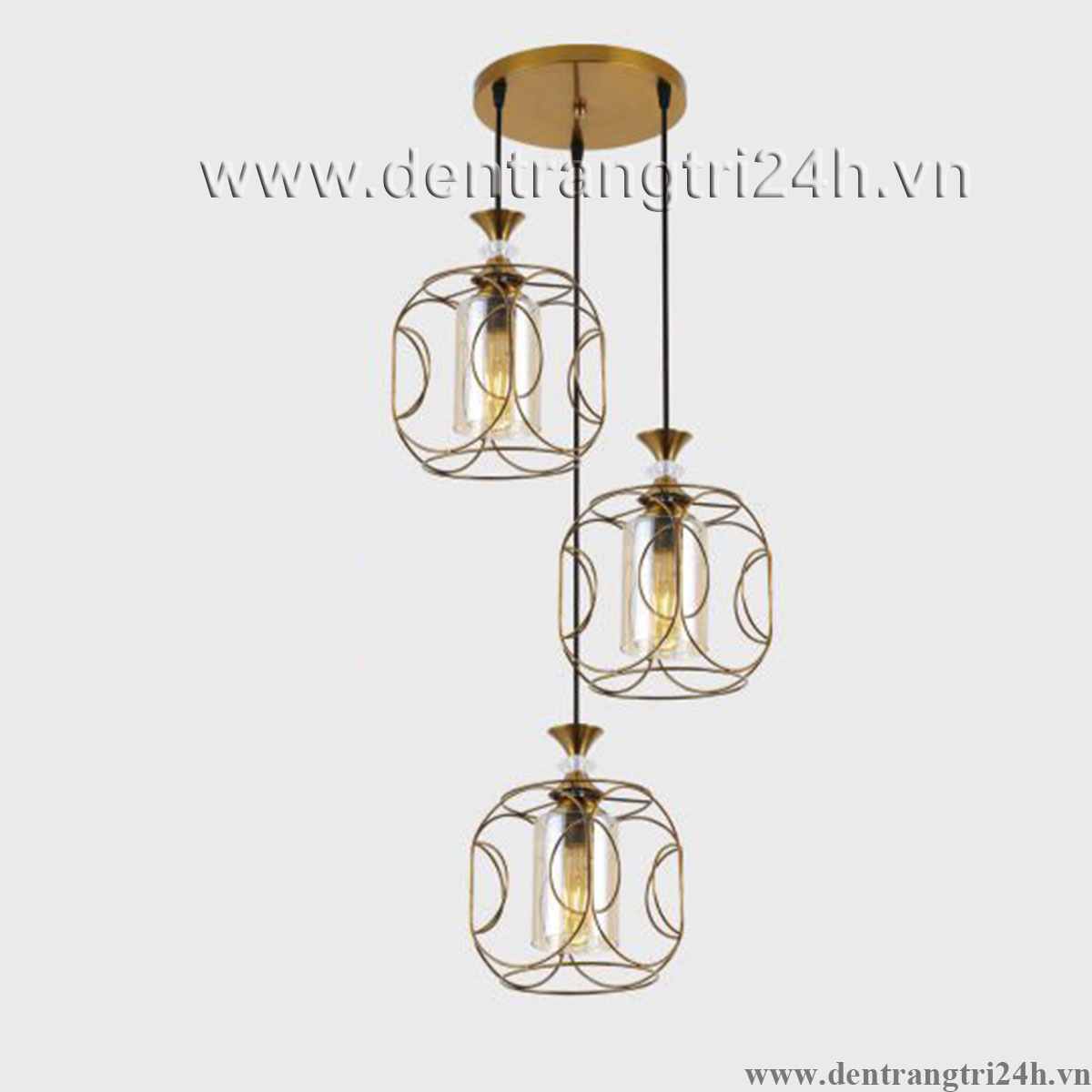 Đèn Thả 3 lồng sắt màu vàng KP9 DY4046/3 GAB Ø400xH1000