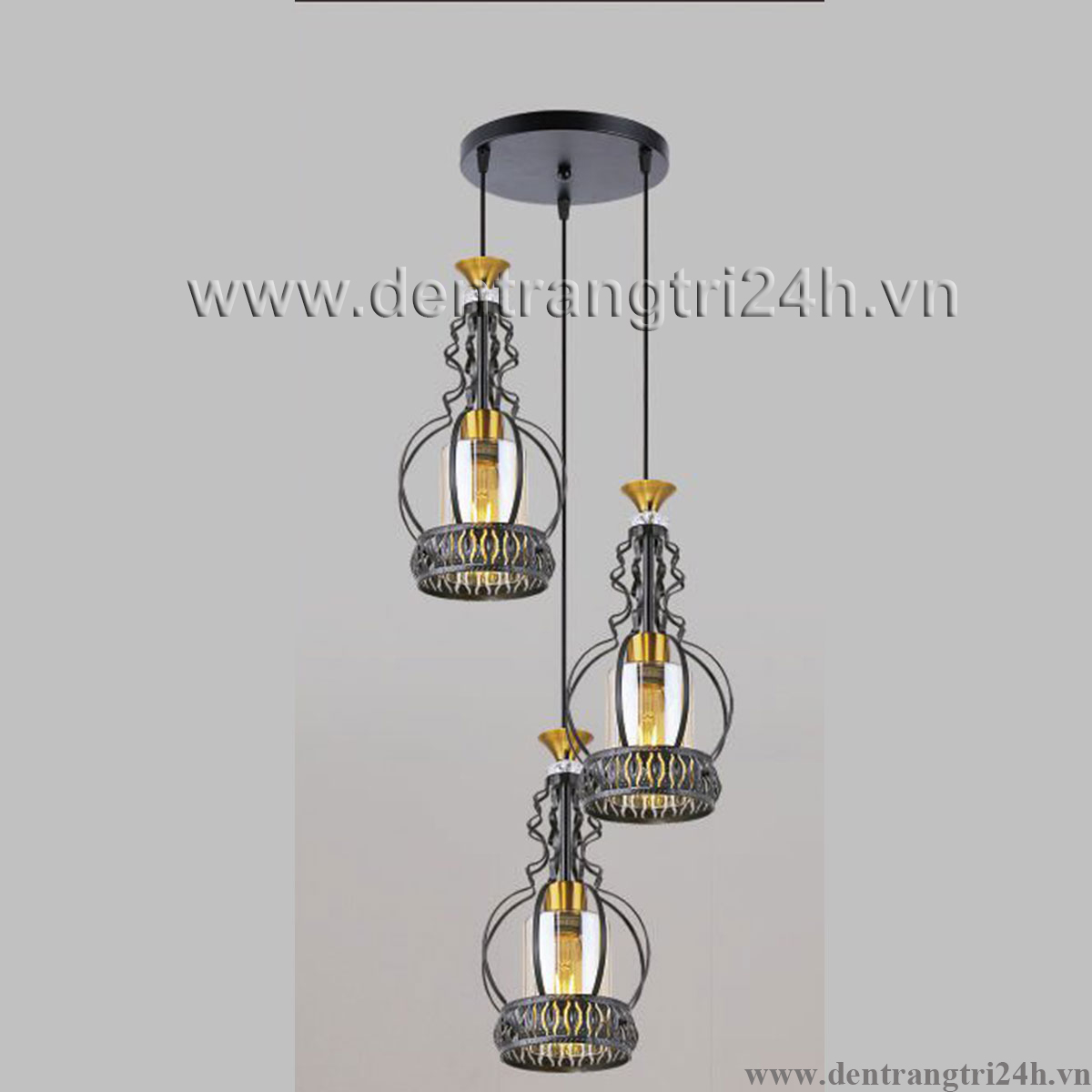 Đèn Thả 3 lồng đèn phong cách bán cổ điển DY4069/3 BK Ø320xH1000