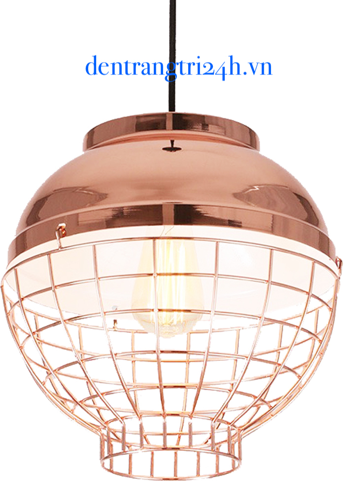 Đèn Thả Bàn Ăn lồng sắt màu đồng hồng TCF90 Ø300xH280
