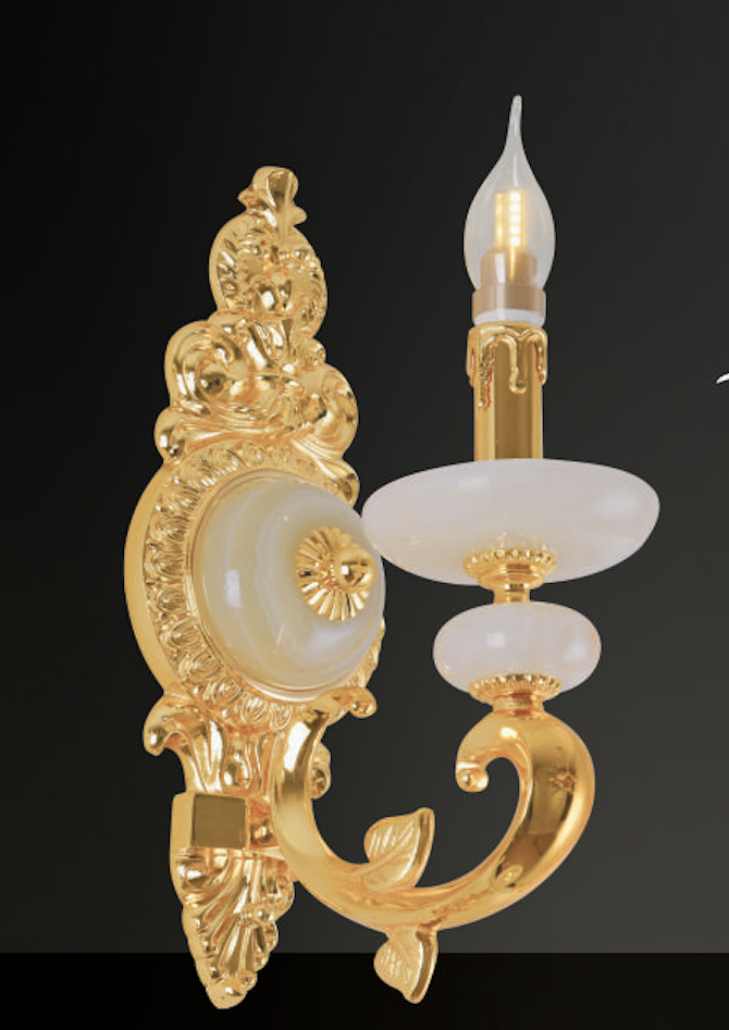 Đèn Tường Nến Đồng cổ điển chao đá vàng VĐ-9334/1 L200xH400