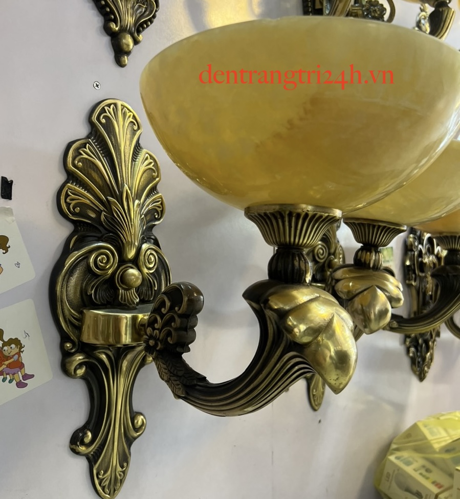 Đèn Tường Đồng tân cổ điển 2 chao đá VĐ-5344/2 L460xH400