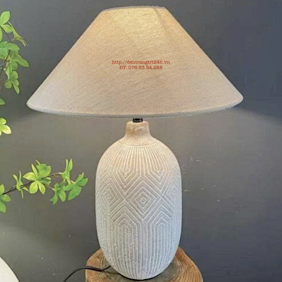 Đèn Bàn thân bằng gốm sứ chao vải trắng ngà dùng đọc sách đầu giường DB-0523