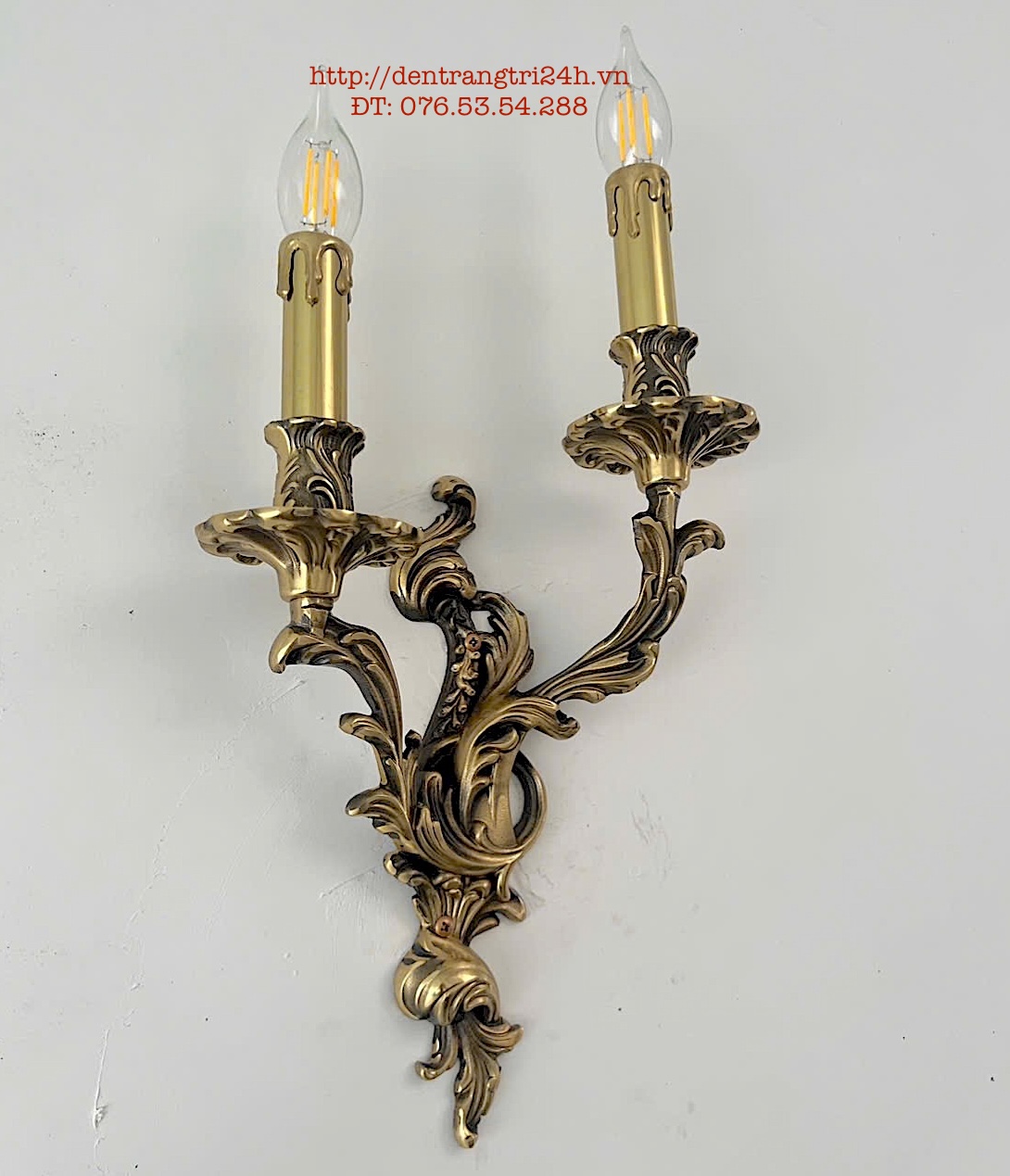 Đèn gắn tường 2 ngọn nến bằng đồng nguyên chất tân cổ điển VDC6036T3