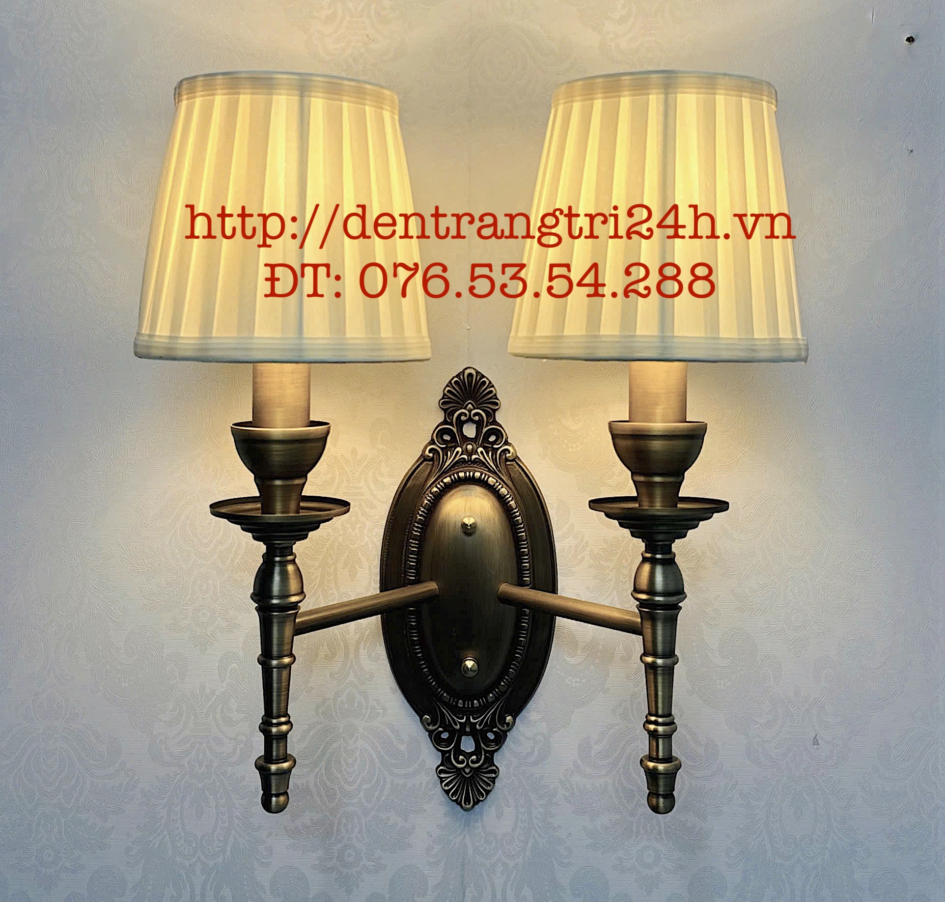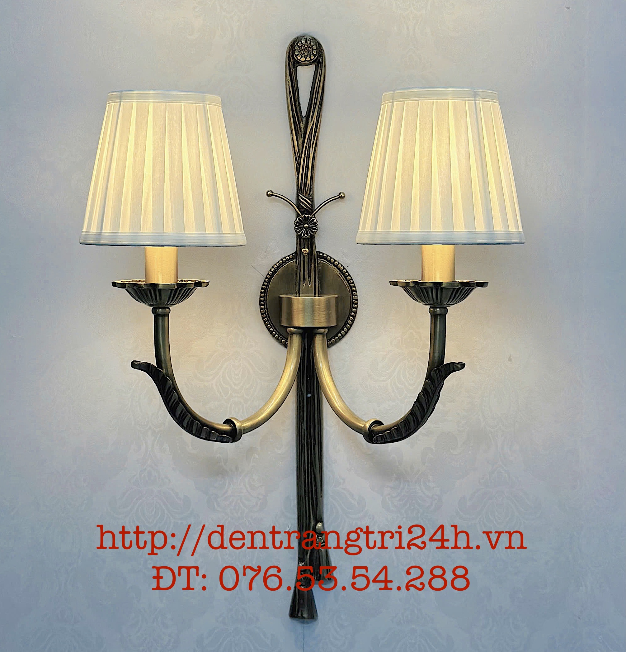 Đèn đôi gắn tường thân đồng chao vải xếp li phong cách tân cổ điển VDC06